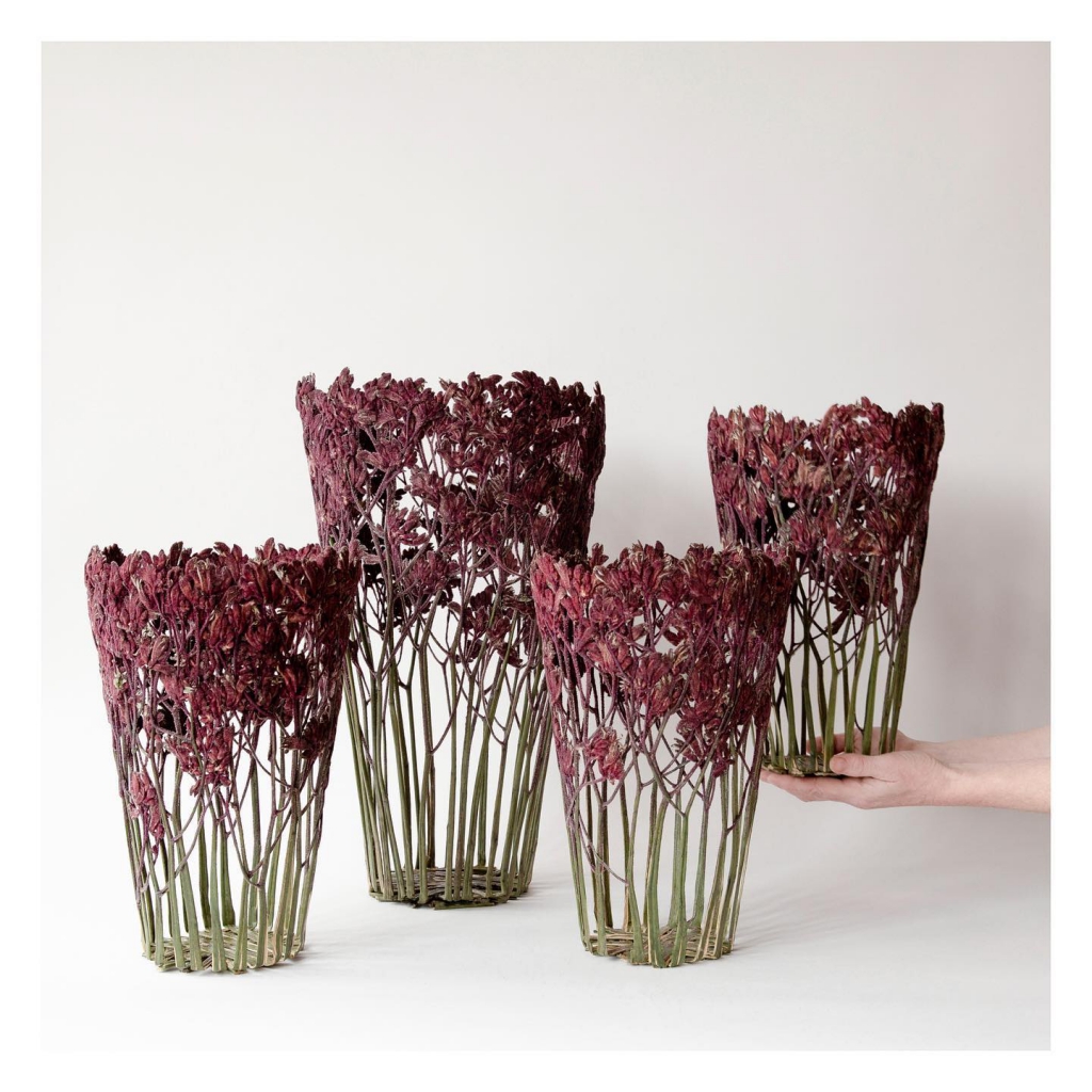 Ezekbe a kaspókba már nem szükséges cserepes virágot tenni, hiszen önmagukban is csodaszépek. Shannon Cleggnek különleges ötlet jutott eszébe évekkel ezelőtt, arra gondolt, szárított virágokat alakít át otthondekorokká. Mint mondja, a gyűjtés a legizgalmasabb része a projektnek, ezt követi a formára préselés – egy-egy ilyen darab nagyjából hat hét alatt készül el.