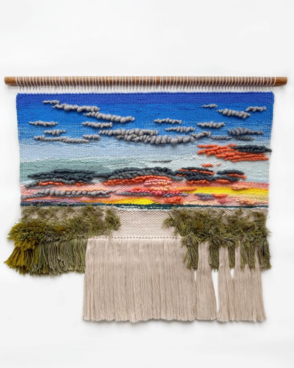 Adrienne Lee munkái csodálatos úti célokat, idilli tájakat, tengereket, mezőket, naplementéket ábrázolnak. Minden egyes darabot kézzel készít el, színes fonalak és egyszerű szövőszék segítségével. Bár alapvetően kétdimenziós képek, a vastagabb és vékonyabb fonalak, valamint a különböző szövési technikák váltakozásával mélységet ad nekik. Így kelnek szinte életre a hullámok, lombok, felhők.