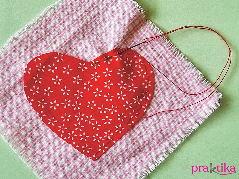 Rajzolj egyszerű ábrákat papírra (szív, nap, meggy és tulipán). Vágd ki mindegyiket. A kockás anyagból vágj a minták alá megfelelő darabokat – a szívnek 12×12 cm; a meggynek 13×13 cm; a napnak 11×11 cm; a tulipánnak 21×11 cm; a felirathoz 14×4 cm. Rojtozd ki a darabok széleit, hogy ne foszlódhassanak.