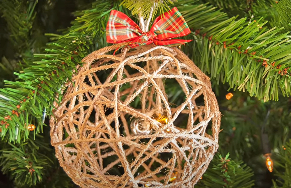 Egy jó hosszú szálat vágj le a gombolyagból és nyomkodd bele a ragasztóba, lehet az dekupázs- vagy tapétaragasztó is. Közben fújj fel egy lufit nagyjából akkora méretre, amilyen nagyságúra szeretnéd majd a gömböt. Ha megvagy vele, kezdd el rajta körbe-körbe tekerni a ragadós zsinórt. Amikor úgy látod, nagyjából egyenletesen betekerted, tedd félre a gömböt száradni egy éjszakára. Másnap óvatosan ereszd le a lufit és húzd ki a gömbből. Tegyél rá masni vagy csengettyűt és akaszd fel a fára.