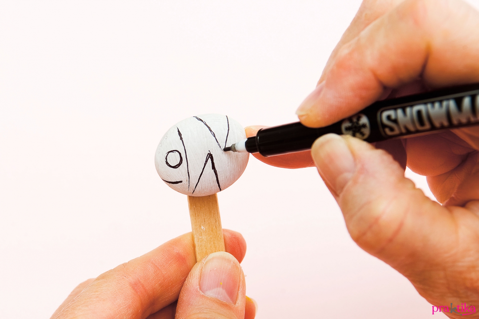 Az alkoholos filctollal rajzold meg a mintázatot – csíkok, sávok, pöttyök, szinte bármilyen alakzat szóba jöhet. Rajzold fel a fej vonalát és a szemfoltot is.