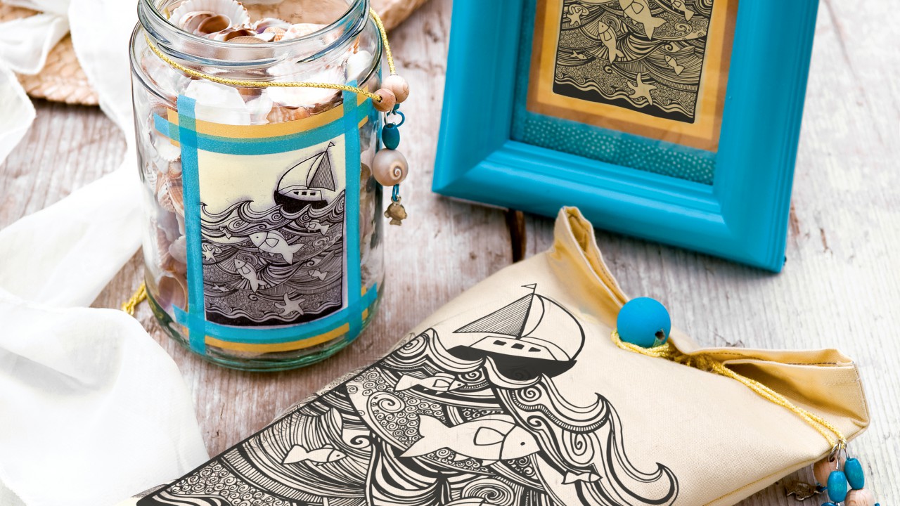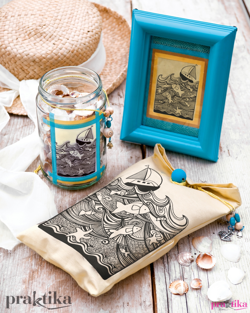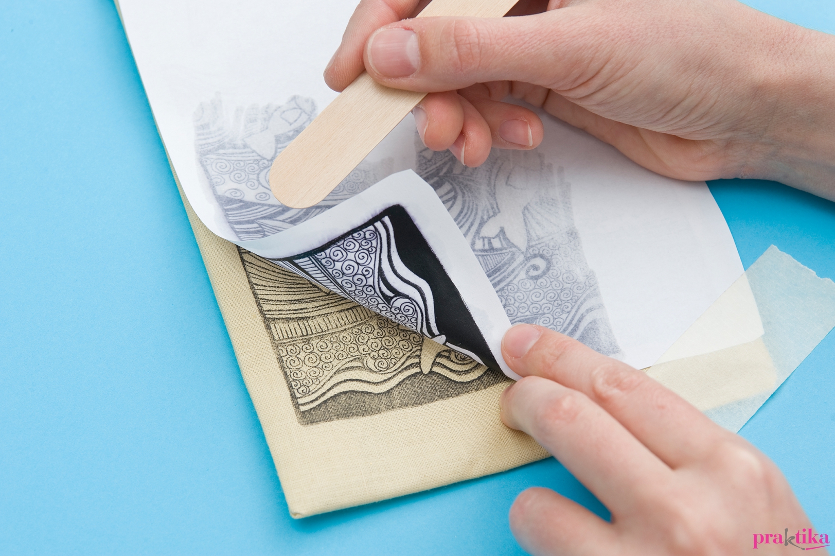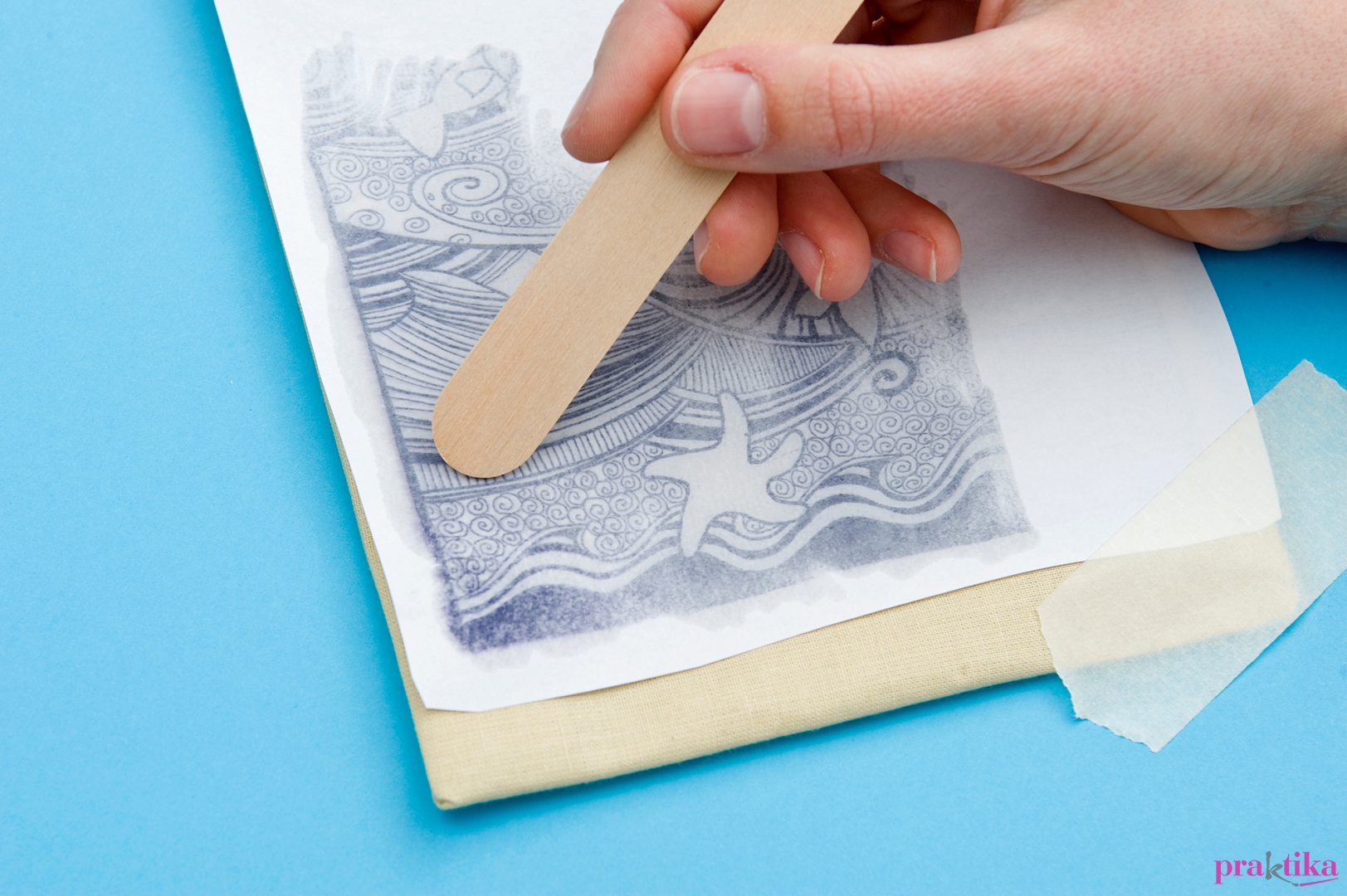 Keress egy fekete-fehér képet, ami felidézi számodra a nyaralás legjobb pillanatait és fénymásold le. Fektesd a papírt a textilre a másolt felével lefelé, és rögzítsd maszkolószalaggal. Kend be transzferfolyadékkal, majd dörzsöld át spatulával. Ellenőrizd, hogy mindenhol átnyomódott-e a minta a textilre. Az elkészült textilből varrhatsz kis tasakot, vagy keretbe is foglalhatod.