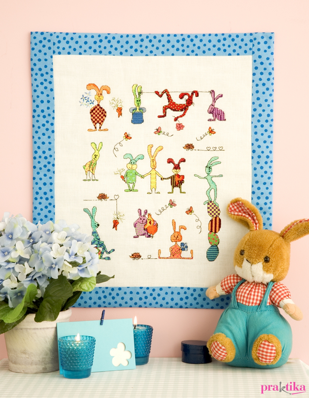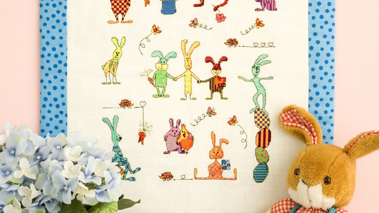 Vidámság és jókedv bujkál minden öltés mögött, biztos meglesz a napi mosolyadagod, mikor ezeket a figurákat hímzed. Kis darab vásznon egyedül is szerepelhetnek a nyuszik – belőlük üdvözlőkártya lehet –, de ha derűre éhes kézimunkázó vagy, egy hosszú fülűt se hagyj le a tablóról. A hímes tojásokon egyensúlyozó példány húsvétkor aktuális, de a szívet ölelgető, spárgázó vagy kalapban üldögélőknek bármikor lehet örülni.