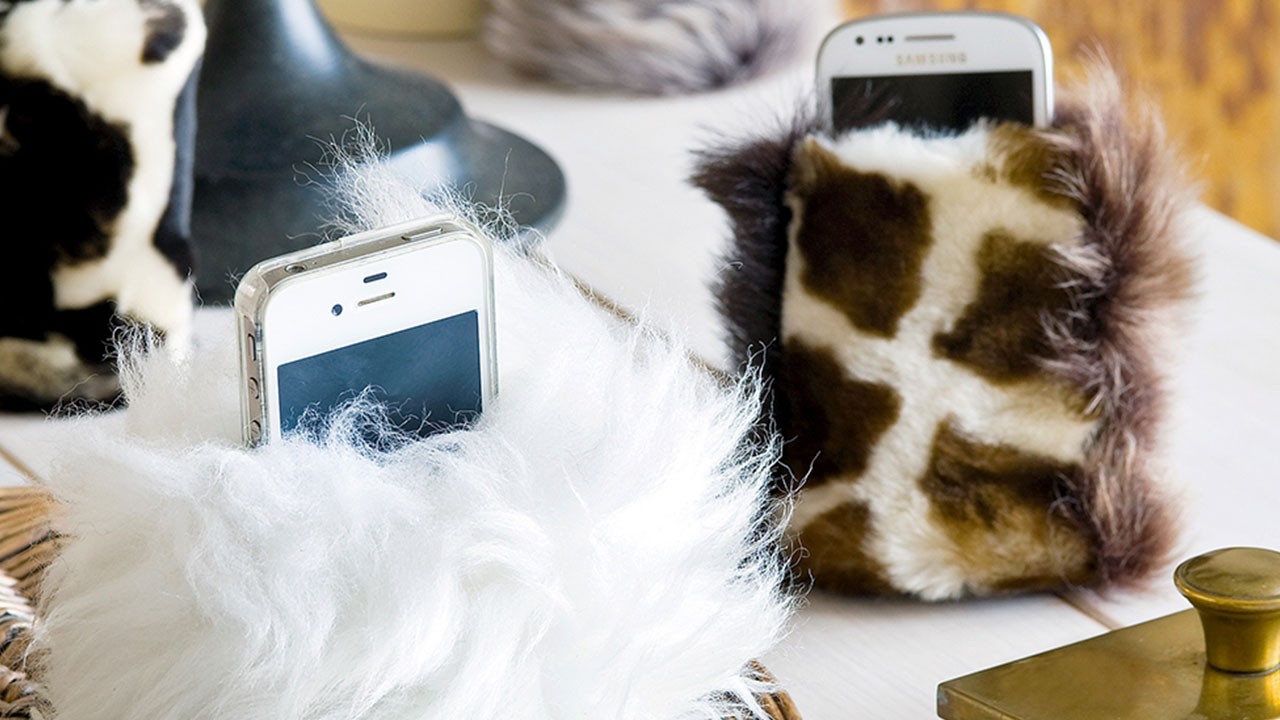 Vágj az aljnak bőrből vagy műbőrből a mobilod nagyságától függően 6, 7 vagy 8 cm átmérőjű korongot (plusz megfelelő varrásszélesség), az oldalpalástnak szőrméből vagy műszőrből téglalapot: A oldal = fenéklap kerülete, B oldal = 2x a mobil magasságának ¾-e (plusz megfelelő varrásszélesség).
