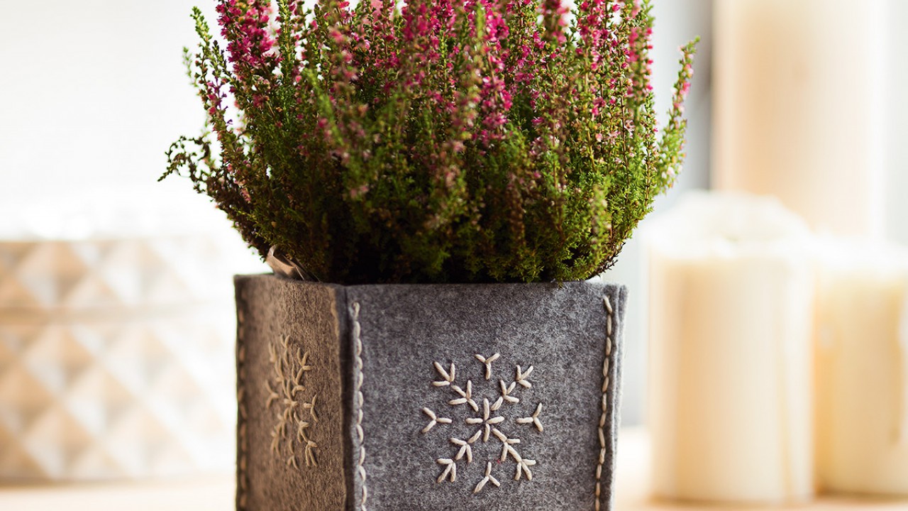 Még a vastagabb filcet is össze lehet öltögetni kézzel, hogy négyszögletű dobozkát kapj. Oldalait pedig varrd ki ragyogó hópelyhekkel. Ha előre kipöttyözöd a mintát, könnyebb szabályos formát hímezni. Az elkészült tárgyat használhatod kaspónak, vagy tároló doboznak is. Ezekből a vastag filcekből is rengeteg szín kapható már, így kedvedre válogathatsz és kedvenc színeidből készítheted el gyönyörű, egyedi tárolódat.