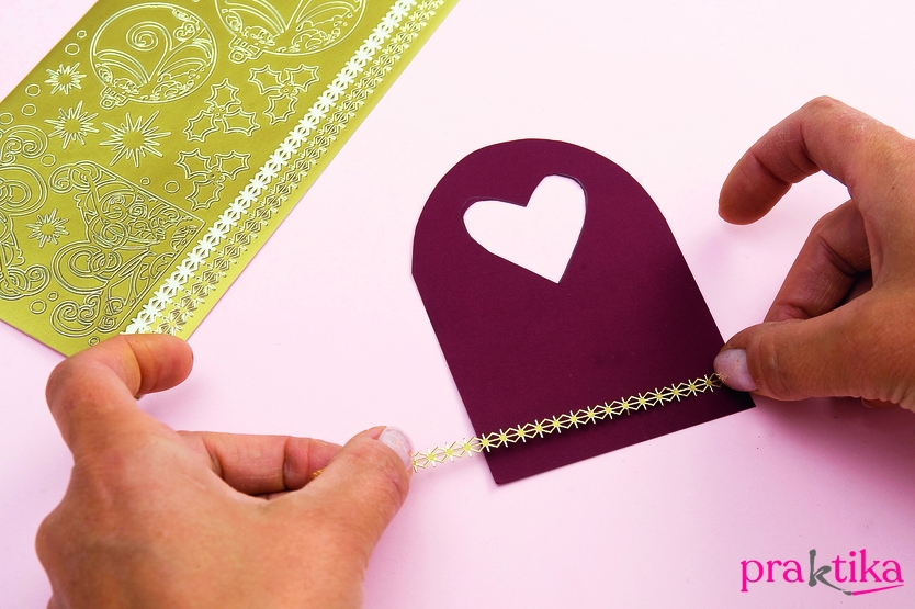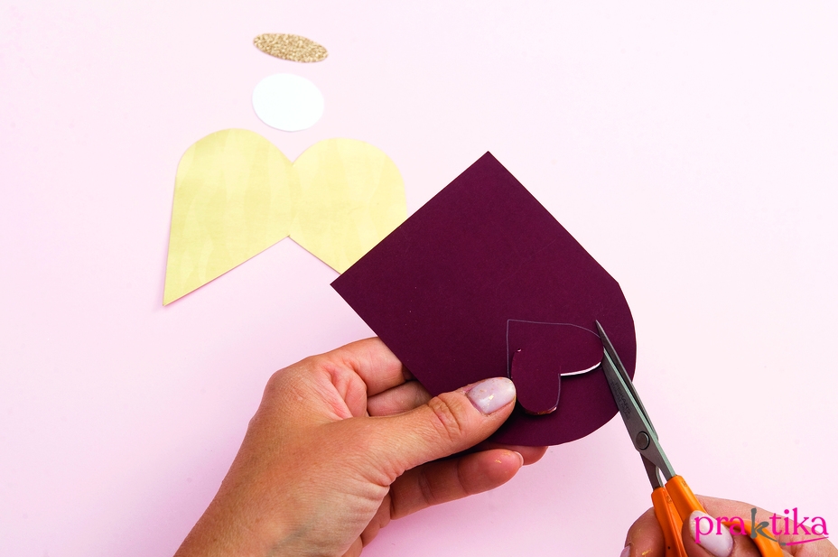 - A testen vágd ki a szívet, vagy ragassz rá egy más színű kartonból kivágottat. Dekoráld tovább a testet aranyszínű kontúrmatricával.