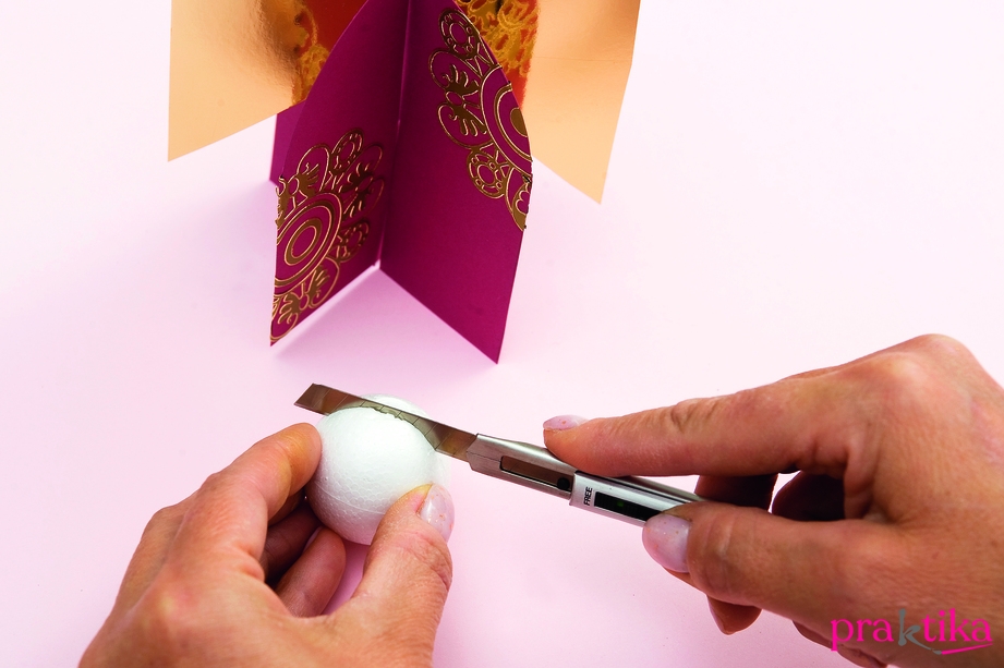 - Sniccerrel készíts egy bevágást a hungarocell gömbökbe, és illeszd őket a szárnyakra.