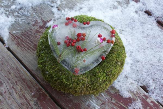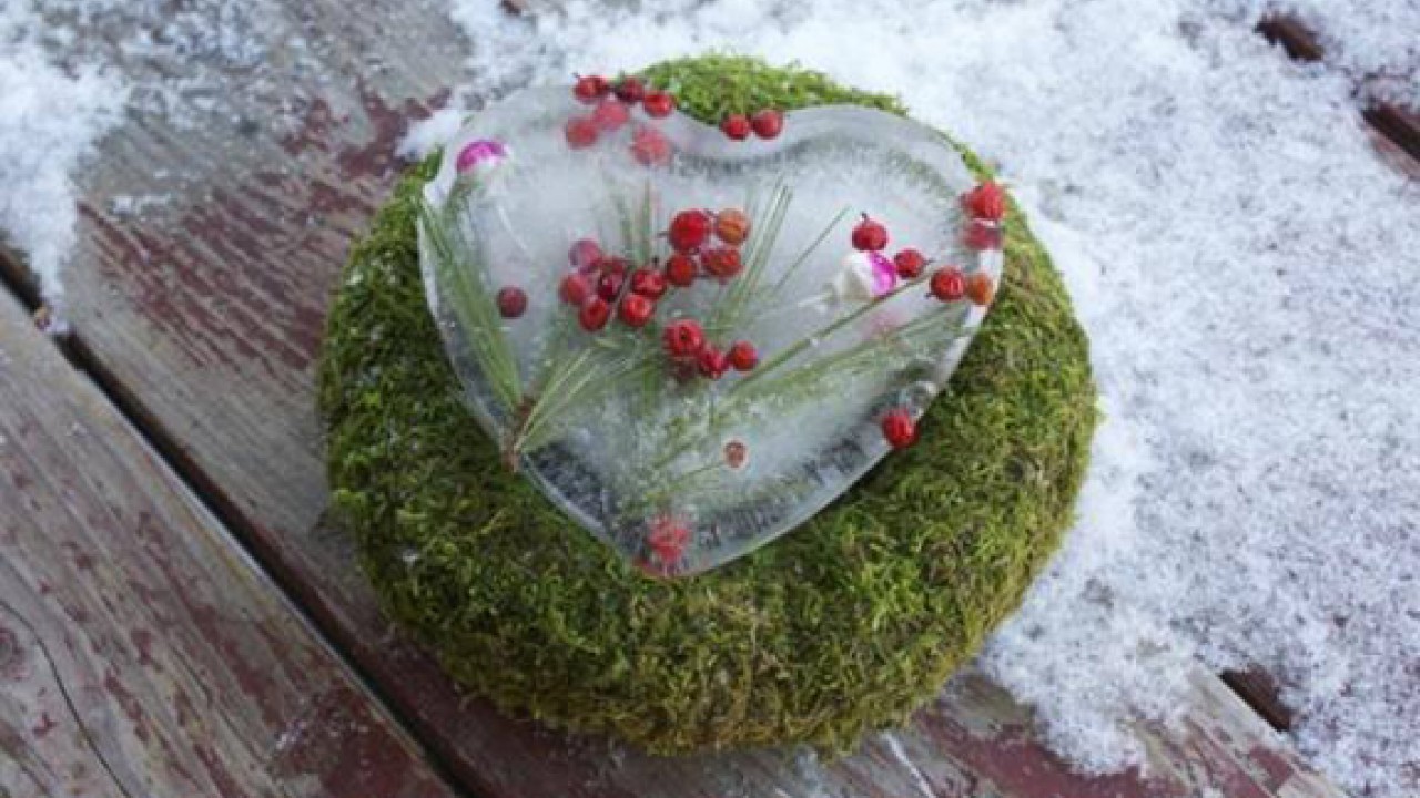 Ha van otthon szilikonos sütőformád, műanyag poharad, vagy akár egy kiürül margarinos doboz, töltsd fel vízzel, tegyél bele egy séta során gyűjtött levelet, termést vagy bogyót és fagyaszd le. Ne feledkezz meg az akasztóról, ha fellógatnád. Ha két formát egymásba illesztesz és közéjük öntöd a vizet, üreges formát kapsz, ezeket mécsestartóként használhatod.