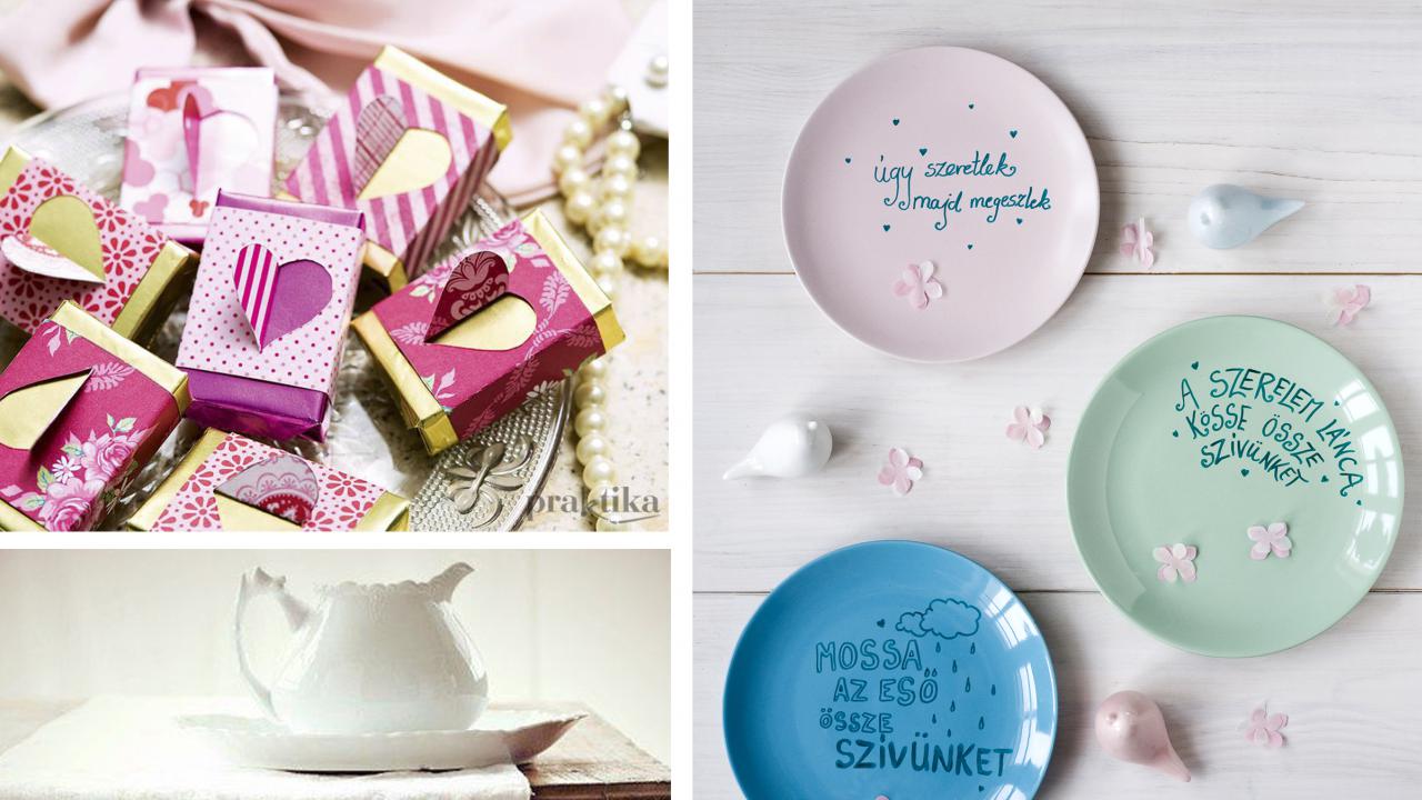 Kerámia filccel írhatsz kedves idézeteket a tányérokra, színespapírral bevont skatulyákba pedig apró finomságokat rejthetsz.