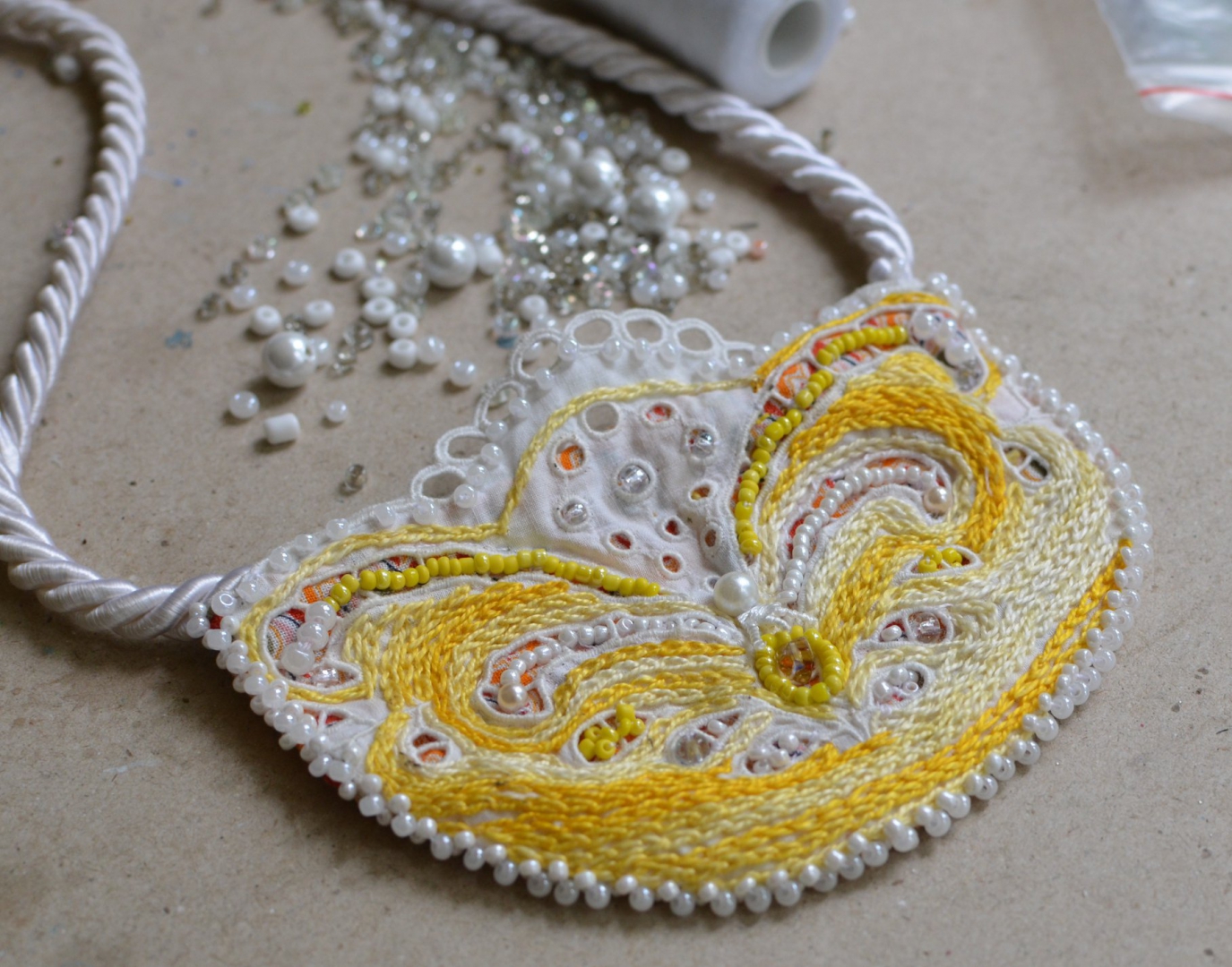 Két éve kezdtem el foglalkozni nyakláncok készítésével, mert érdekeltek a kultikus, amulettszerű ékszerek. Ezeket textilek felhasználásával készítettem, érdeklődésem később a gyöngyvarrás használata felé fordult. Fantáziám, kreativitásom, alkotó energiám kiteljesedése az ékszer készítés. Munkám során varrás, hímzés, gyöngyvarrás, alkalmanként a fémek felhasználása jellemző."