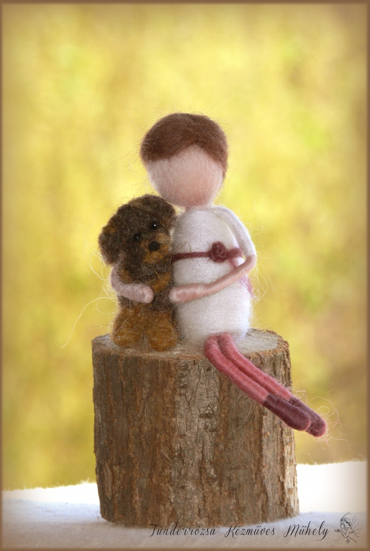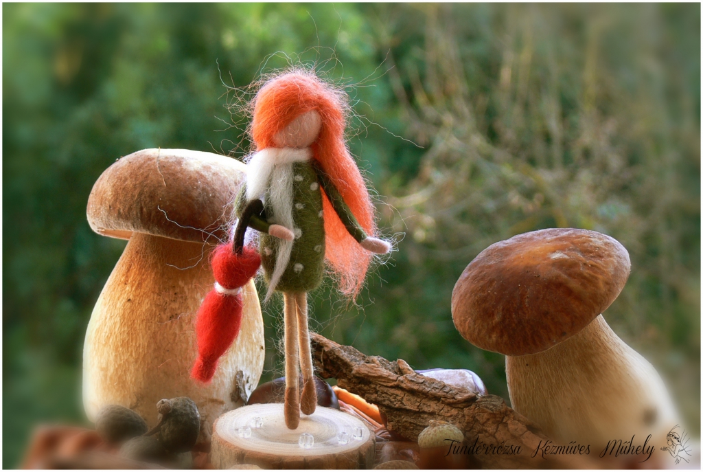 Több, mint 4 éve, egy őrségi kirándulás alkalmával találkoztam a nemezeléssel. Egy tulipánt készítettem hagyományos vizes, szappanos technikával. Azonnal megtetszett a gyapjú, mint alapanyag, mesés színei magával ragadtak. Miután hazaérkeztünk, vásároltam egy kisebb mennyiséget. Néhány apróbb tárgy készült akkor, és csak pár hónap elteltével került elő újra a gyapjú. Hamarosan rátaláltam a tűnemezelésre. Gyönyörű tündérekre, angyalokra leltem, és mivel mindig is közel álltak hozzám ezek az apró lények, elhatároztam, hogy magam is készítek ilyen szépségeket. A kezdet nem volt könnyű, magyar leírást nem igazán találtam, így külföldi videókat, képeket böngésztem. Miután megtanultam az alapokat, nem volt megállás. Azt vettem észre, hogy már nem csak magamnak, családomnak, hanem ismerőseim kérésére is születnek tündérkék, angyalok, manók. Különböző alkalmakra ajándékozzák: esküvő, babalátogató, búcsúajándékként pedagógusoknak, karácsonyra vagy „csak úgy”, szeretetből. Készülnek nemezportrék fénykép, leírás alapján. Az idei évben nagy megtiszteltetést ért, kedvenc zenekarom, az Ismerős Arcok jubileumi albumuk borítóképévé választotta a róluk készült nemez figuráimat.