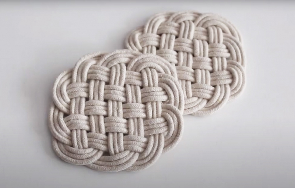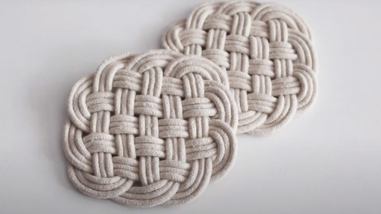 A poháralátéthez szükséged lesz egy 3 milliméter vastagságú makramézsinórra. Első lépésben készíts elő egy kartondobozt és a tetejére körzővel rajzolj egy nagyjából 10 centiméter átmérőjű kört, amit aztán ossz tíz részre. Ezekbe a pontokba szúrj egy-egy gombostűt. Ezután jöhet a makraméfonal, húzogasd át a körön a videón látható módon. Ha elkészült az alap, húzd le a kartonról és úgy fejeztd be az alátétet.