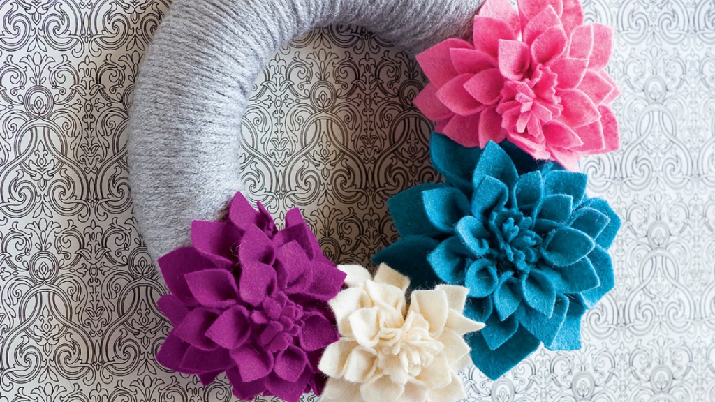 Puha pamutfonal és színpompás filcvirágok díszítik ezt a rendhagyó ajtókoszorút, mellyel színesebbé teheted otthonod. A hungarocellkoszorút körbe kell tekerned, erre kerülnek rá gombostűvel a színes virágok. Kattints ide a fázisfotókért!