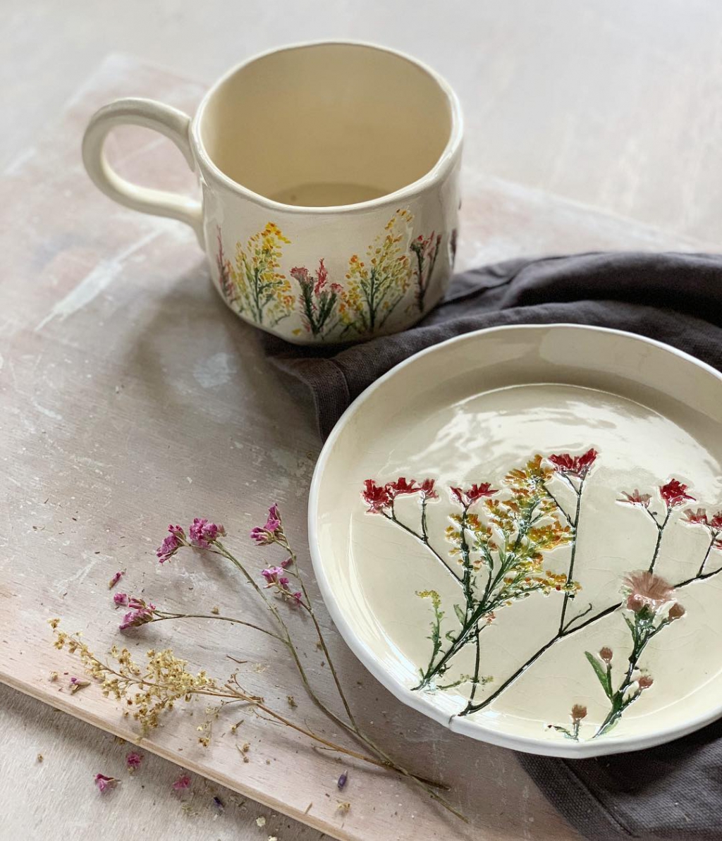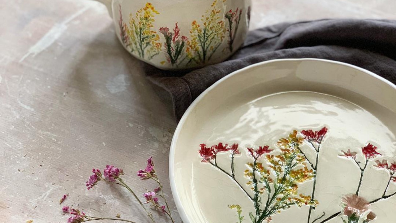 Hessa Al Ajmani hazájában, az Egyesült Arab Emírségekben őshonos növényekkel díszíti kerámiatárgyait, bögréit, tányérjait. Édesanyja kertjéből vagy a közeli sivatagból gyűjti össze, majd préseli össze őket. A darabokat ezután egyesével belenyomja a készülő kerámiába, majd óvatosan lehúzza, hogy a lenyomatuk látható maradjon. Végül színes festékkel megfesti a növényeket, így igazán valósághűnek tűnnek.