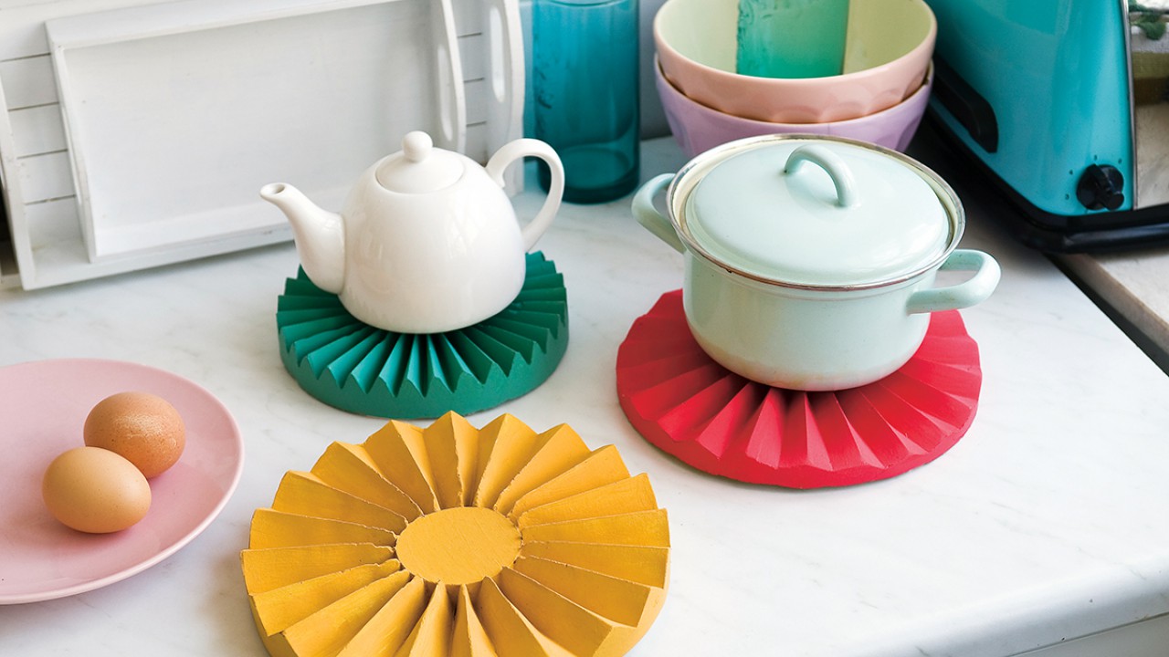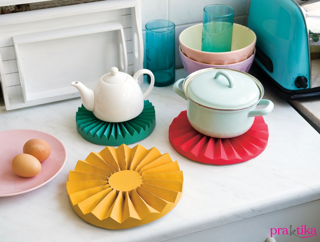 6. Távolítsd el a kartonformát a gipszről, és hagyd tovább száradni, míg teljesen kifehéredik – ez több napot is igénybe vehet. Fesd le a kedvenc színedre, majd lakkozd alul-felül. Melegragasztó segítségével ragassz az aljára egy megfelelő méretűre vágott filckorongot.