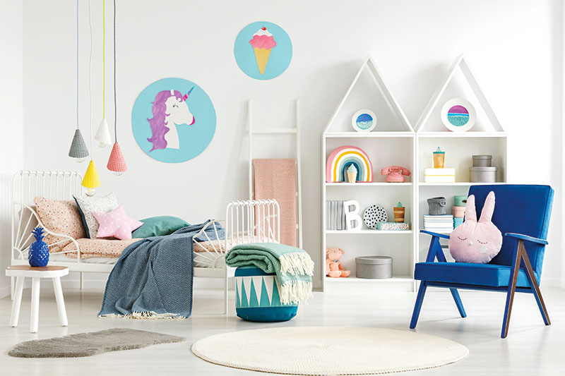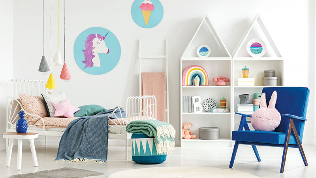 Mondj búcsút a semleges, bézses, barnás szobáknak és merészebb árnyalatokkal, a pasztell és az élénk színek kombinációival varázsold színessé gyermeked szobáját. Kis méretű terek esetén a fehér alap jobb választás, ebben az esetben a kiegészítőkön jelenjenek meg az élénk színek. Vidám és játékos lesz a végeredmény, ha a mintákat és a színeket is merészen kombinálod.