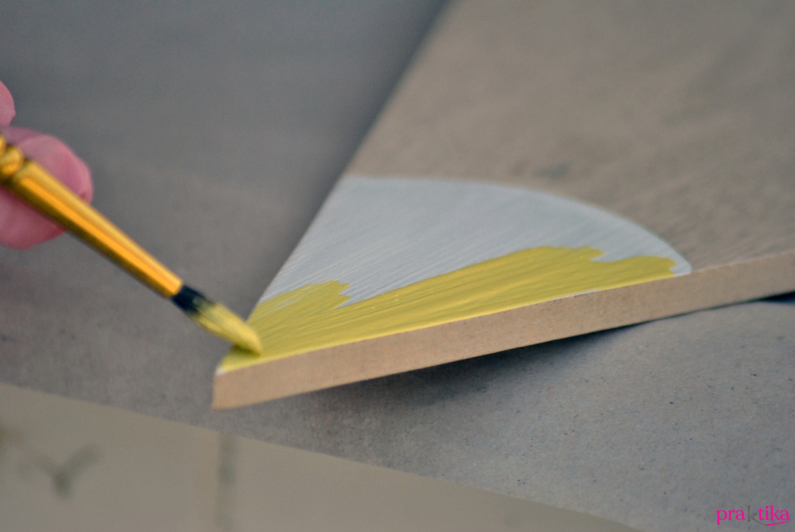 - Fesd le fehér krétafestékkel a ceruzák hegyét, húzd át a fél- és a negyedköríveket szintén fehér festékkel, azután fesd le a ceruzák testét is fehérre. Hagyd megszáradni a festéket.