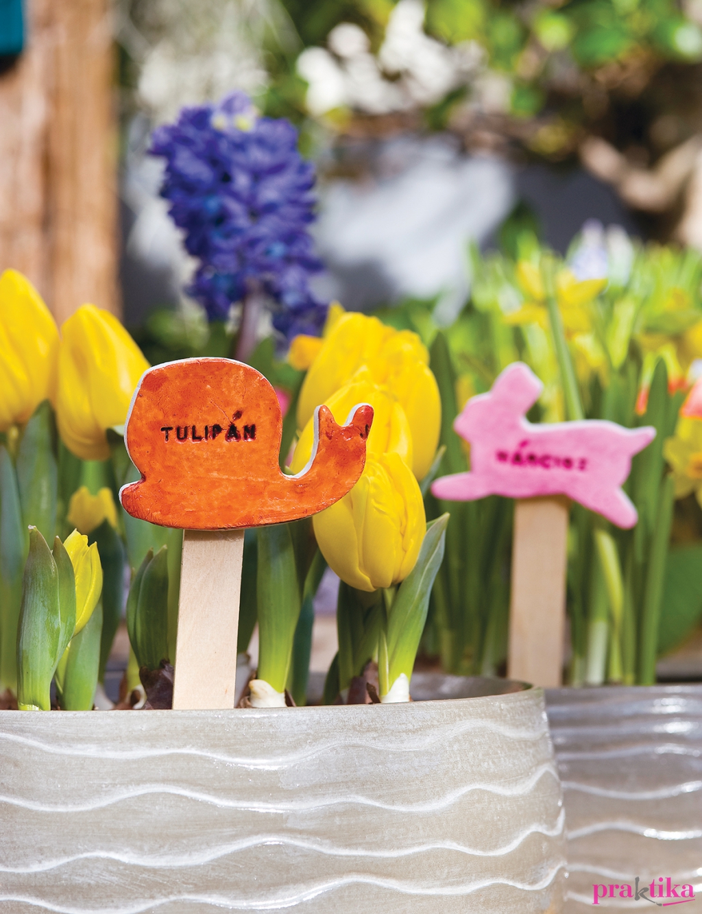 A hátoldalukra melegragasztóval rögzíts egy-egy spatulát, melynek végét sniccerrel hegyesre vághatod, hogy könnyen becsússzon a talajba.