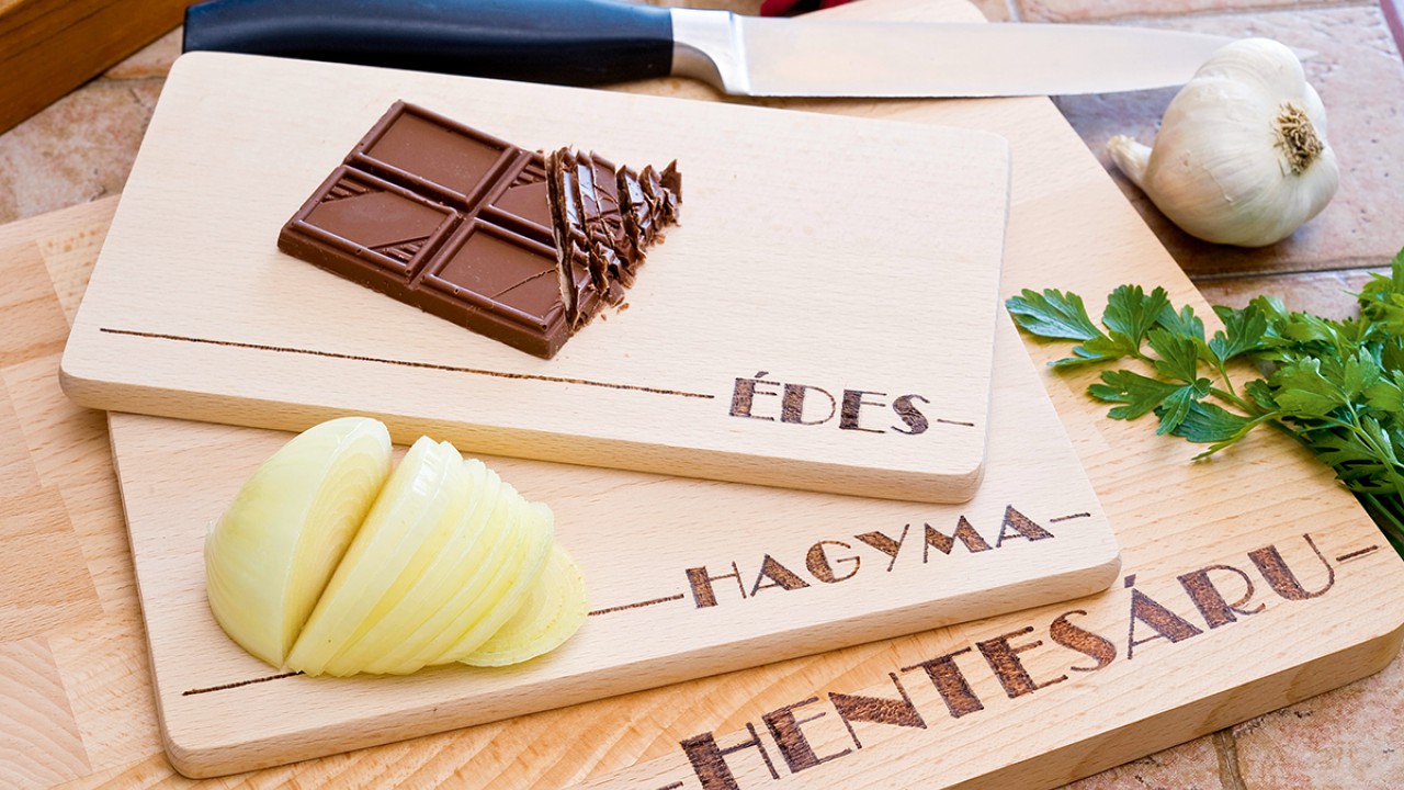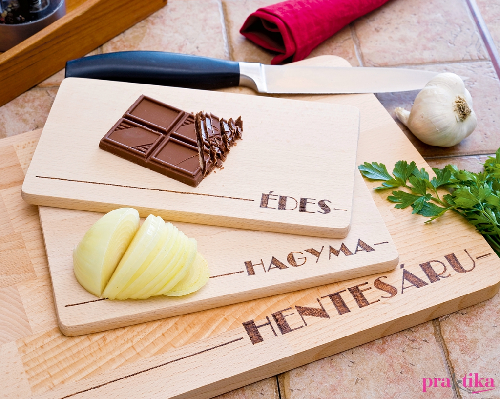 A családból bárki tüsténkedik a konyhában, könnyebbség lesz neki, ha feliratok segítik eldönteni, hogy az édes vagy fűszeres ételekhez melyik deszka való. Az égetéssel rögzített szavak minden mosogatást kibírnak, érdemes ezt a módszert kipróbálni. Egy neked tetsző betűtípussal írd fel papírra a szövegeket. Indigóval másolhatod a fa vágódeszkákra, majd a pirogravírozó eszközzel égesd bele a feliratokat. A felforrósított pákát türelmesen húzd át a jelöléseken, legkönnyebben a fa szálirányában tudod egyenesen húzni a vonalakat.