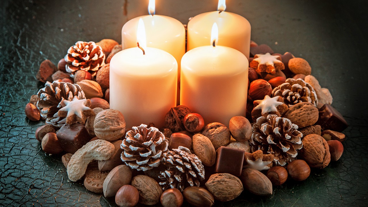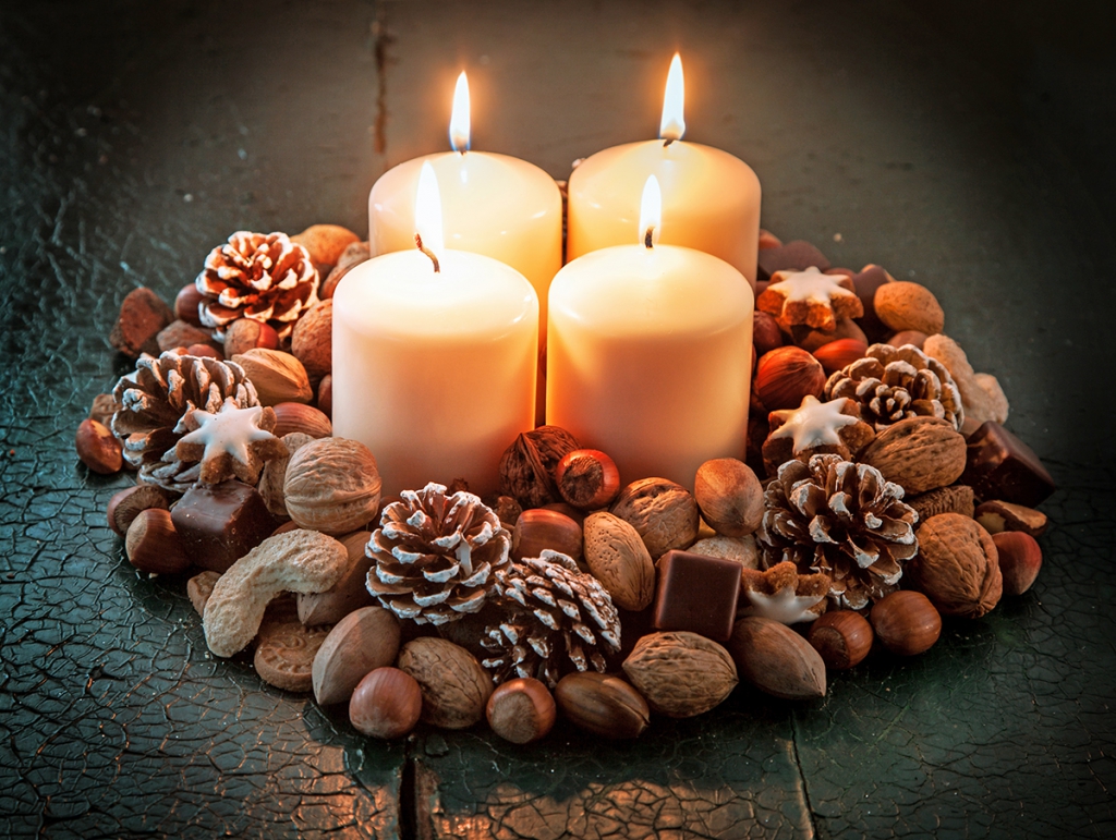 Egy szép kis edénykébe állítsd be a gyertyákat. Tedd őket körbe mohával, zuzmóval, ágacskákkal, termésekkel, vagy csillogó karácsonyfadíszekkel. Egy rönkből vagy faszeletből is készülhet a rendhagyó koszorú. Elég egy-két mini fenyőt és őzikét állítani a gyertyák mellé, hogy megidéz a tél hangulatát.