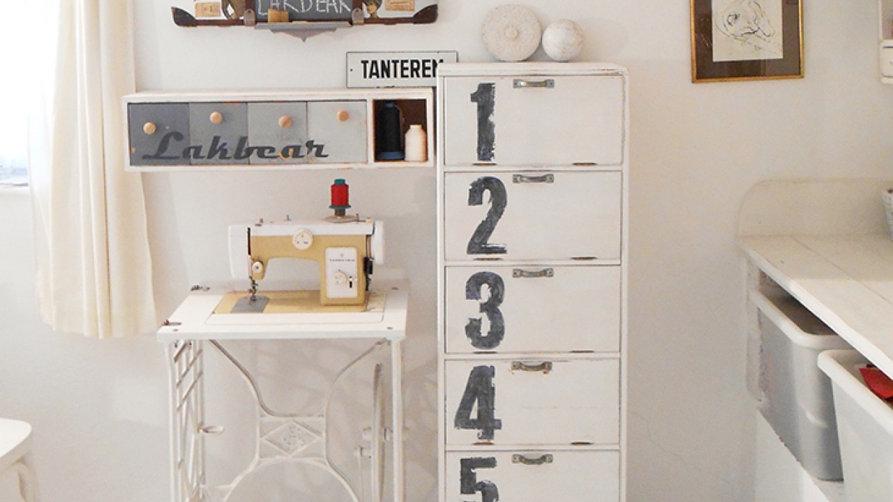 Lakbear a festésen túl, óriásira nagyított számokkal dekorálta ki a régi szekrénykét. A festett számokat aztán vintage effect akrilkoptatóval alakította tovább, majd egy kis repesztőlakk is került a felületre.
