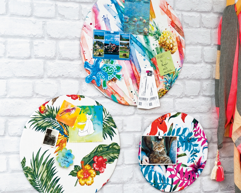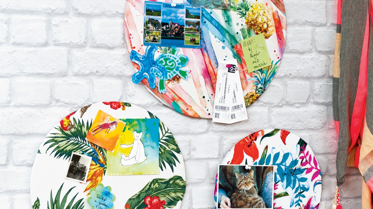 Körzővel rajzolj kört a hullámkartonra, és vágd ki kétszer. Vágj a textilből egy akkora kört, mely 5 cm-rel túllóg a kartonkorong minden oldalán. Néhány ponton rögzítsd egymáshoz a két kartont melegragasztóval. Vagdosd be 3-4 cm-ként a textilt, hajtsd fel, és melegragasztóval ragaszd a kartonra a kis füleket. Zsinórból ragassz a hátoldalára akasztót.